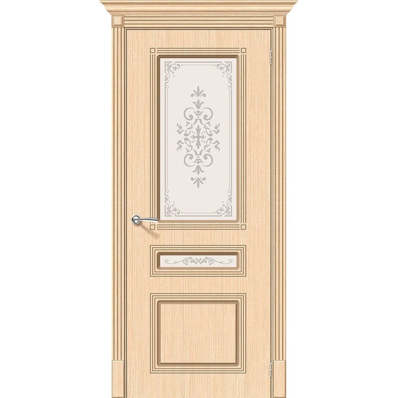 Межкомнатная дверь Стиль цвет Ф-22 (БелДуб), стекло Худ., покрытие Шпон, размер 200*80 см.