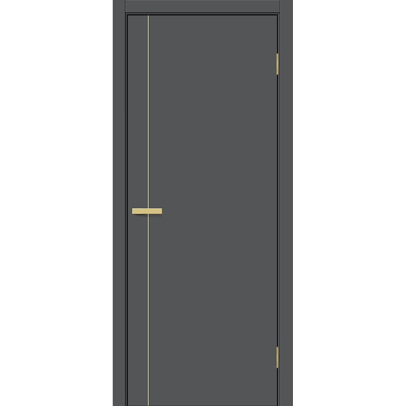 Межкомнатная глухая дверь щитовой конструкции с золотыми матовыми декоративными вставками, исполнение «П» (Премиум). Особенности: Композитный каркас двери облицован плитами высокой плотности толщиной 6 мм, что вдвое превышает стандартную толщину. Внутри жесткая и прочная панель Honeycomb Block. Торцы защищены износостойкой кромкой толщиной 1 мм по технологии «невидимого шва». Для кромкооблицовки и отделки лицевых поверхностей применяется влагостойкий PUR-клей необратимой полимеризации. Отделка: ПЭТ - инновационное покрытие c гладкой и приятной на ощупь поверхностью, устойчиво к повреждениям, не выцветает со временем. «Эмаль-эффект» - как эмаль, только лучше. Один из самых экологичных материалов (институт Fraunhofer IVV, Германия). Компания Bravo первой в России начала использовать 100% ПЭТ (без добавок) для промышленного производства дверей. Декор: Stormy Silk — примерно соответствует RAL 7016, матовый (≈ 3,8 GU), SGold (SG) — золотые матовые вставки (P3). Комплектующие: Телескопические погонажные изделия для качественного регулируемого монтажа. Дверная коробка с TPE-уплотнителем для мягкого закрывания. Толщина, мм: 36 Масса брутто, кг: 22.4 Объем, куб.м: 0.064