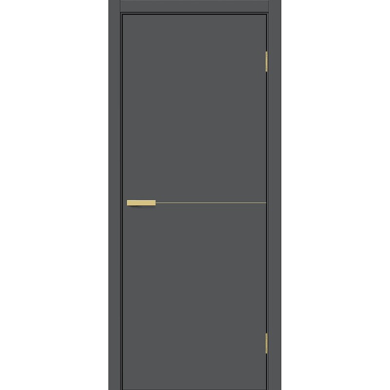 Межкомнатная глухая дверь щитовой конструкции с золотыми матовыми декоративными вставками, исполнение «П» (Премиум). Особенности: Композитный каркас двери облицован плитами высокой плотности толщиной 6 мм, что вдвое превышает стандартную толщину. Внутри жесткая и прочная панель Honeycomb Block. Торцы защищены износостойкой кромкой толщиной 1 мм по технологии «невидимого шва». Для кромкооблицовки и отделки лицевых поверхностей применяется влагостойкий PUR-клей необратимой полимеризации. Отделка: ПЭТ - инновационное покрытие c гладкой и приятной на ощупь поверхностью, устойчиво к повреждениям, не выцветает со временем. «Эмаль-эффект» - как эмаль, только лучше. Один из самых экологичных материалов (институт Fraunhofer IVV, Германия). Компания Bravo первой в России начала использовать 100% ПЭТ (без добавок) для промышленного производства дверей. Декор: Stormy Silk — примерно соответствует RAL 7016, матовый (≈ 3,8 GU), SGold (SG) — золотые матовые вставки (P3). Комплектующие: Телескопические погонажные изделия для качественного регулируемого монтажа. Дверная коробка с TPE-уплотнителем для мягкого закрывания. Толщина, мм: 36 Масса брутто, кг: 23.5 Объем, куб.м: 0.072