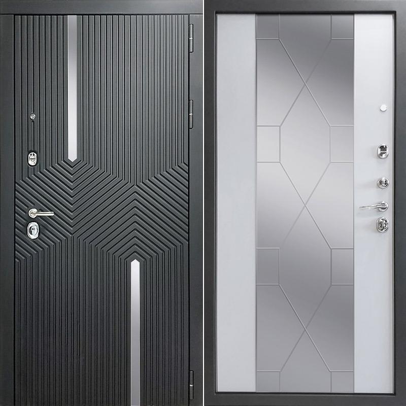 Входная дверь Астория зеркало Софт черный/Светло-серый (гладкий матовый) 205*86 правая