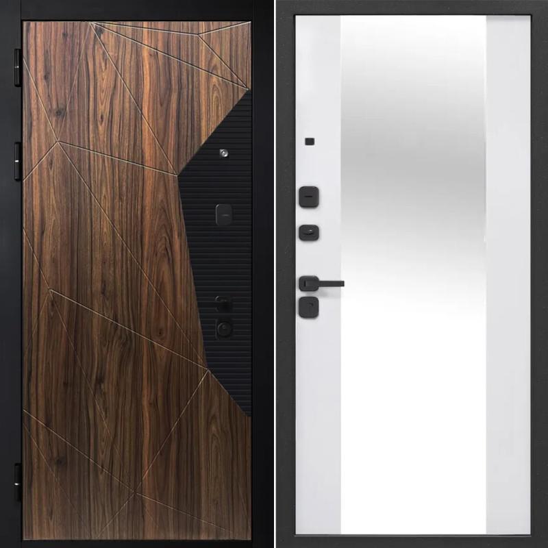 Входная дверь 9 см Геометрия Зеркало Орех каньон / Эмалит белый 205*86 левая